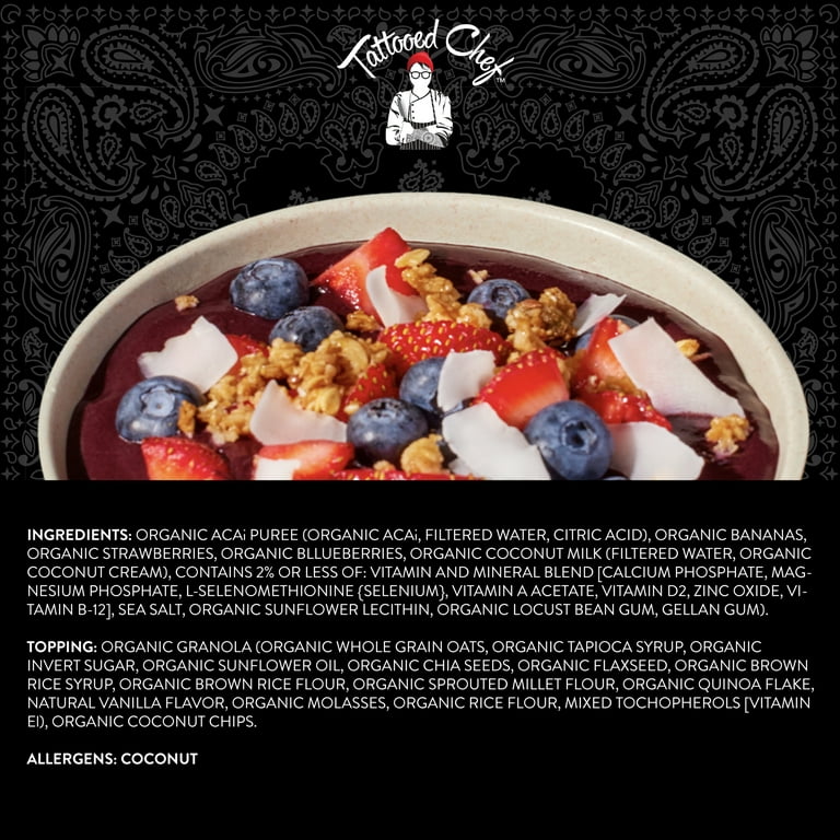 Tattooed Chef Gluten Free Vegan Organic Acai Bowl 6 25 Oz Frozen Walmart Com